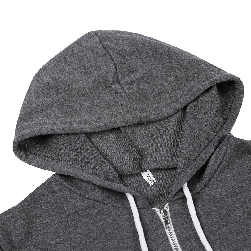 Long sleeves and drawstring hooded design, full zip up closure, kangaroo pouch pocket.