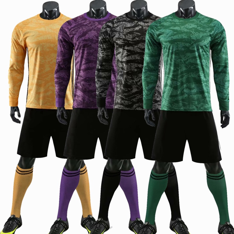 Kids Adult goalkeeper Soccer Jerseys Shorts Set Men Child Football Uniform Long sleeve Training Suit Sports Kit Jersey