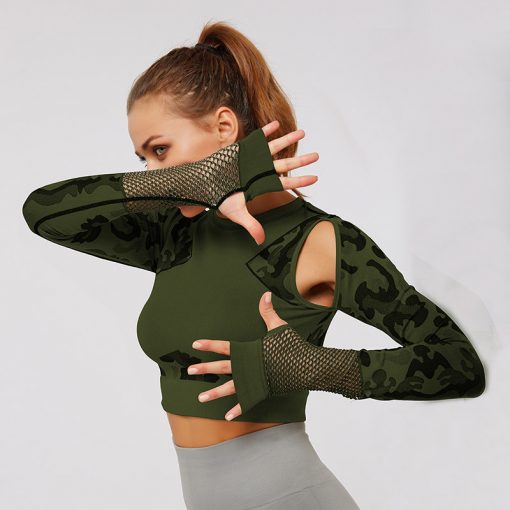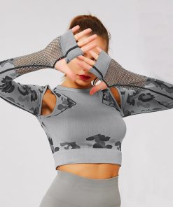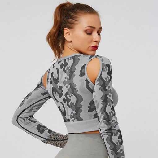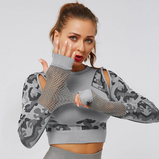 New Seamless Mesh Top Long Sleeve Workout Tops For Women Fitness Gym Top Athletic Gym Shirt Women Clothes Camouflage Top
