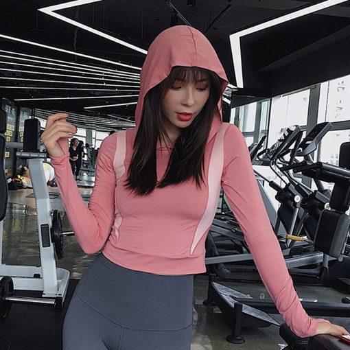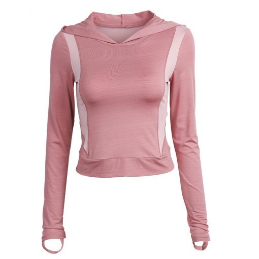Sexy Spliced Hoodie Sport Top Women Long Sleeve Fitness Tops Running Athletic Sweatshirt Gym shirt Slim Quick drying Yoga Top