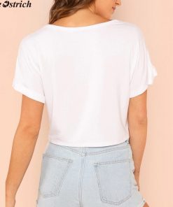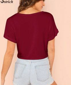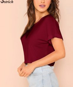 Fashion Women Casual Round Neck Short Sleeve Soild Crop Top T-Shirt Blouse